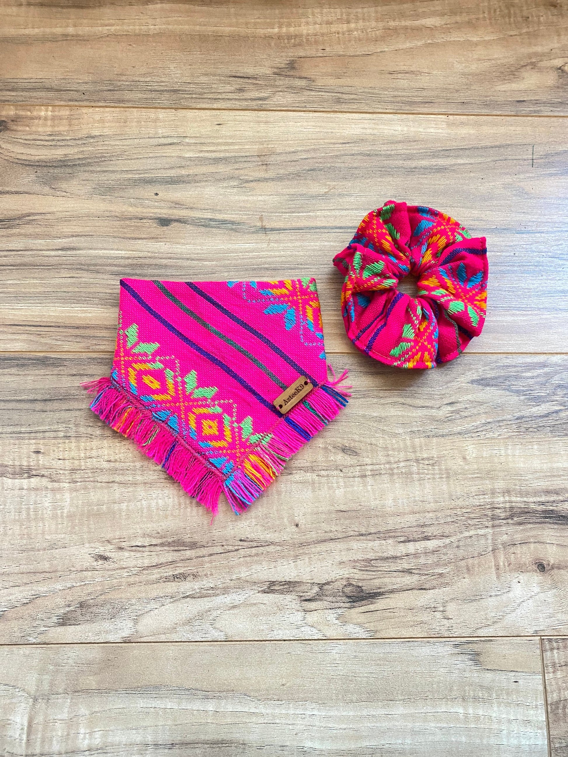 The Mommy and me set includes a bandana for your pup and a scrunchie for you.